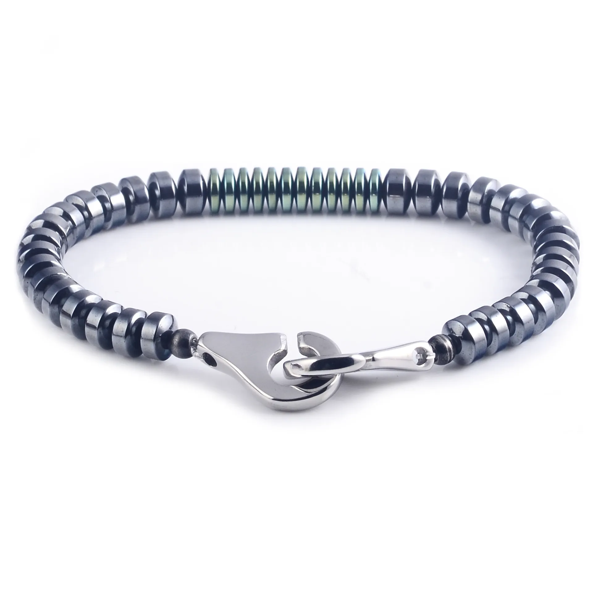 Free size βραχιόλι με εσωτερική ανθεκτική σιλικόνη, φυσικές πέτρες αιματίτη και χειροπέδες αστυνομίας για άνδρες από τον TRIBUTE JEWELS.