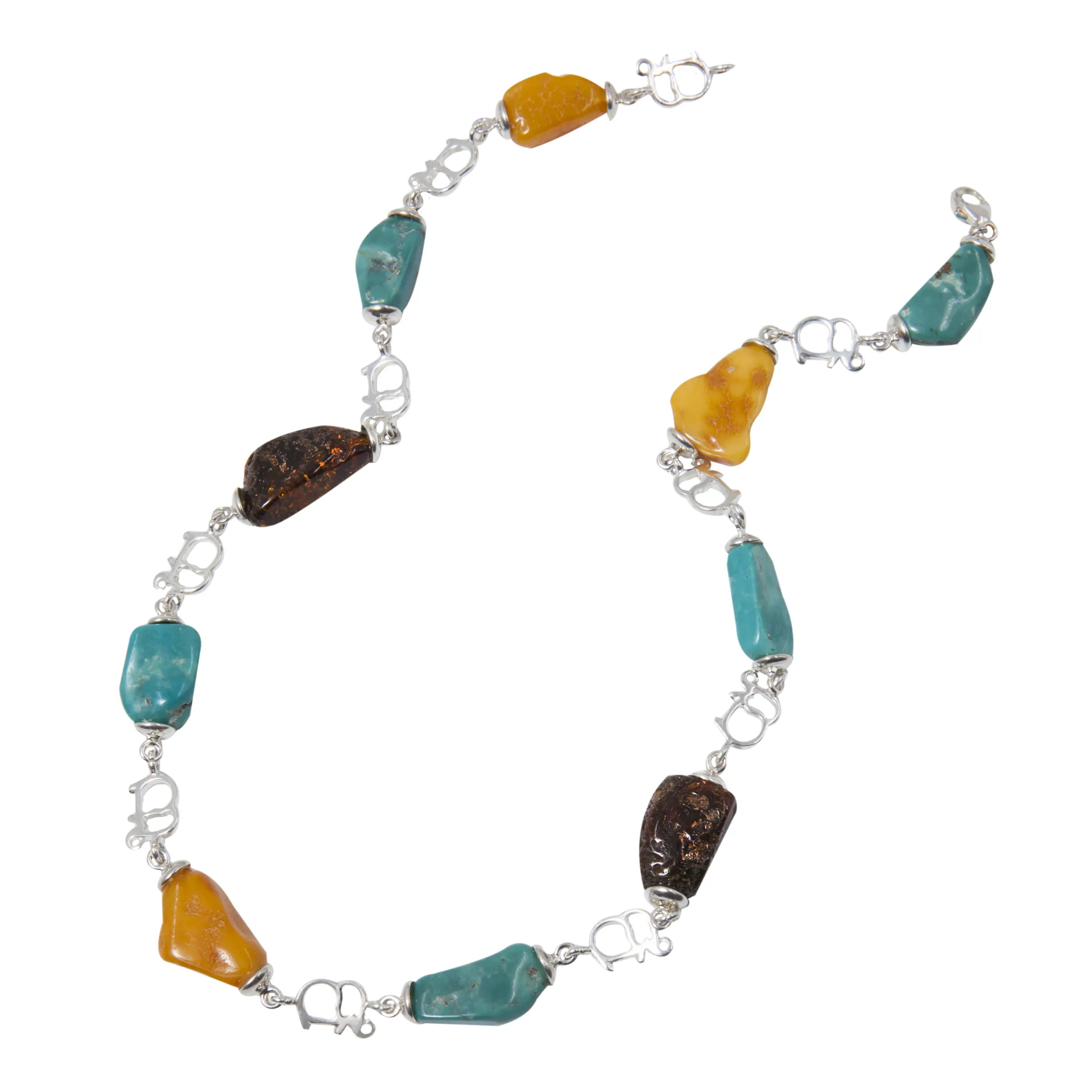 Κολιέ με κεχριμπάρι, τυρκουάζ & ελέφαντες, χειροποίητο, ασημένιο, 46cm,γυναικείο,silverline
