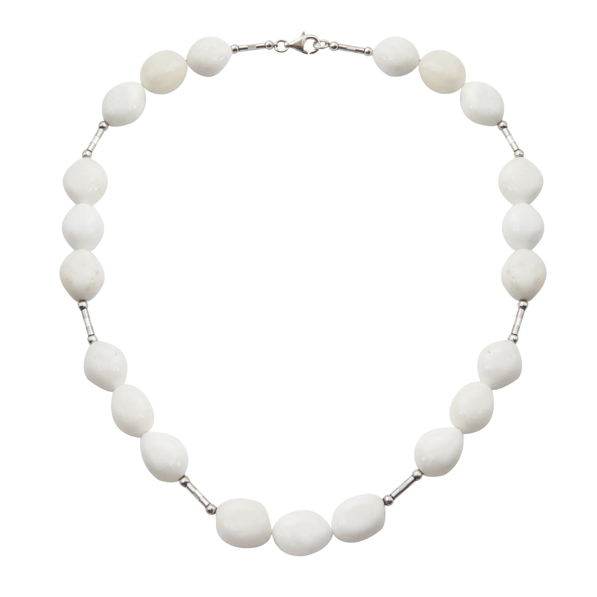 Κολιέ, γυναικείο, χειροποίητο, ασημένιο, με λευκούς όνυχες, 44 εκατοστά, επιπλατινωμένο,silverline, 0320039904