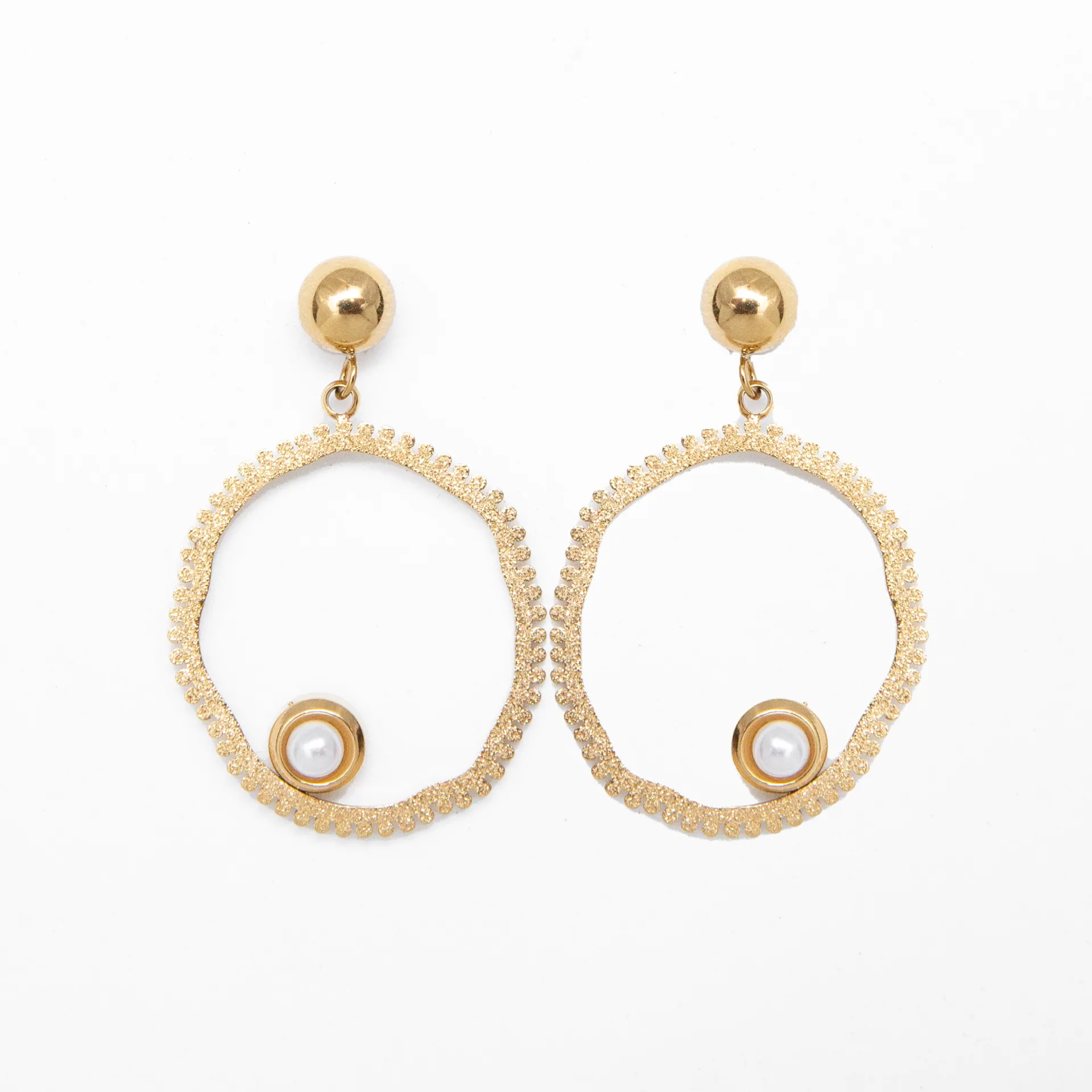 Σκουλαρίκια γυναικεία, εντυπωσιακά, μήκος 3,7 εκατοστά, από ανοξείδωτο ατσάλι, με κίτρινο επιχρύσωμα & μαργαριτάρι, καρφωτά,silverline, 0130551401,