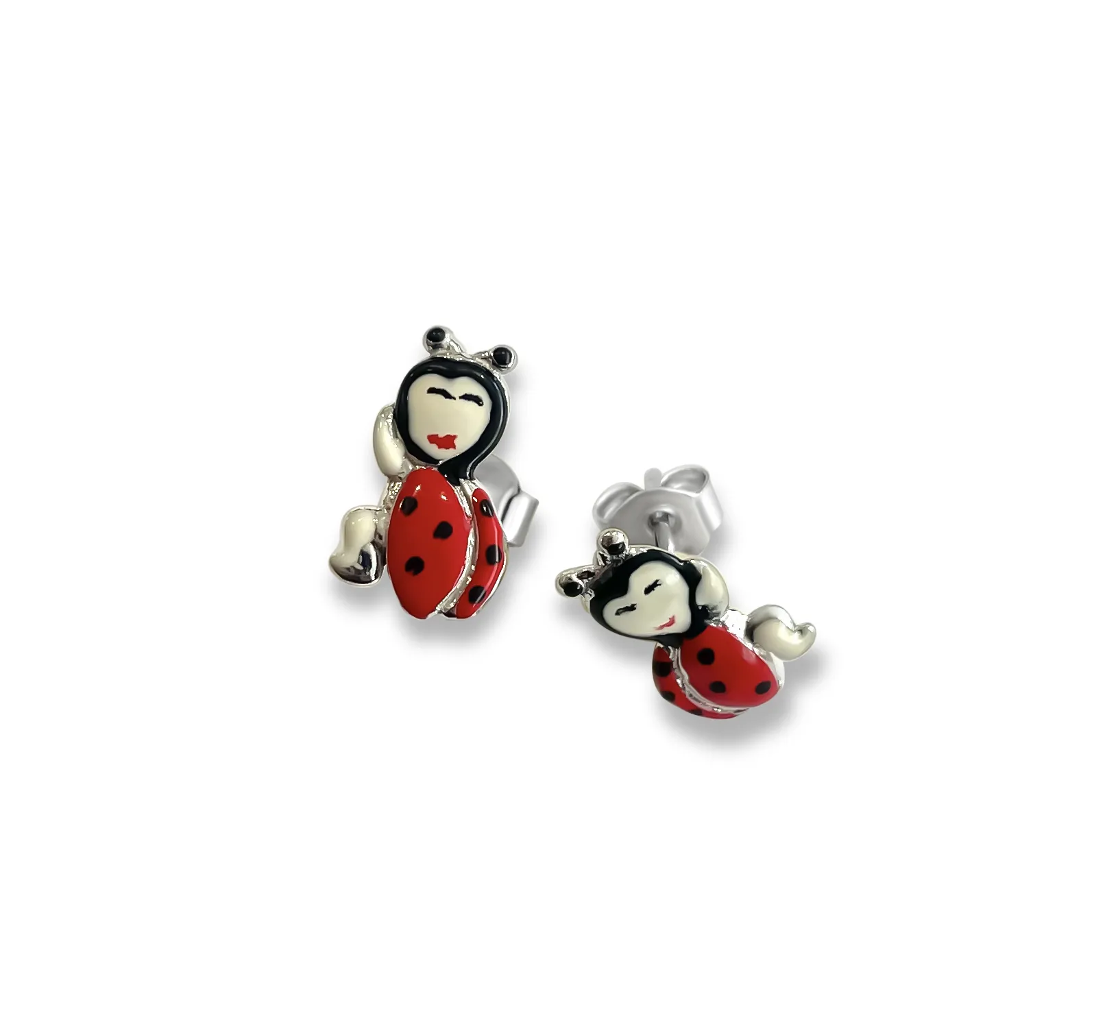 Σκουλαρίκια, παιδικά, για κορίτσια, ασημένια, με σμάλτο, πασχαλίτσες, επιπλατινωμένα, καρφωτά, woofie,0130445501