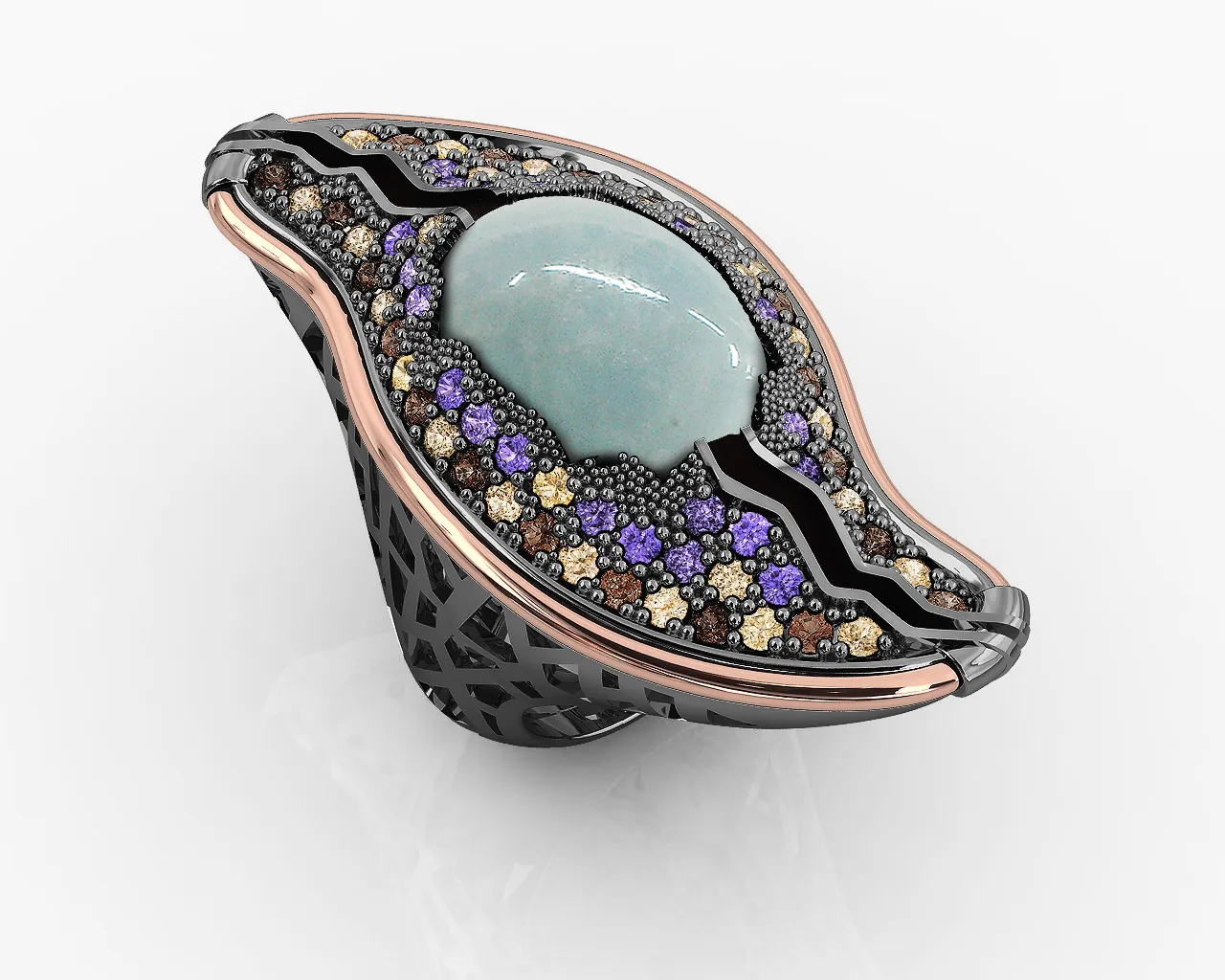 Δαχτυλίδι ασημένιο, γυναικείο, με φλούδα χρυσού Κ18, άκουα μαρίνα και ζιργκόν, με ασπρόμαυρο επιπλατίνωμα,silverline, 0430656601