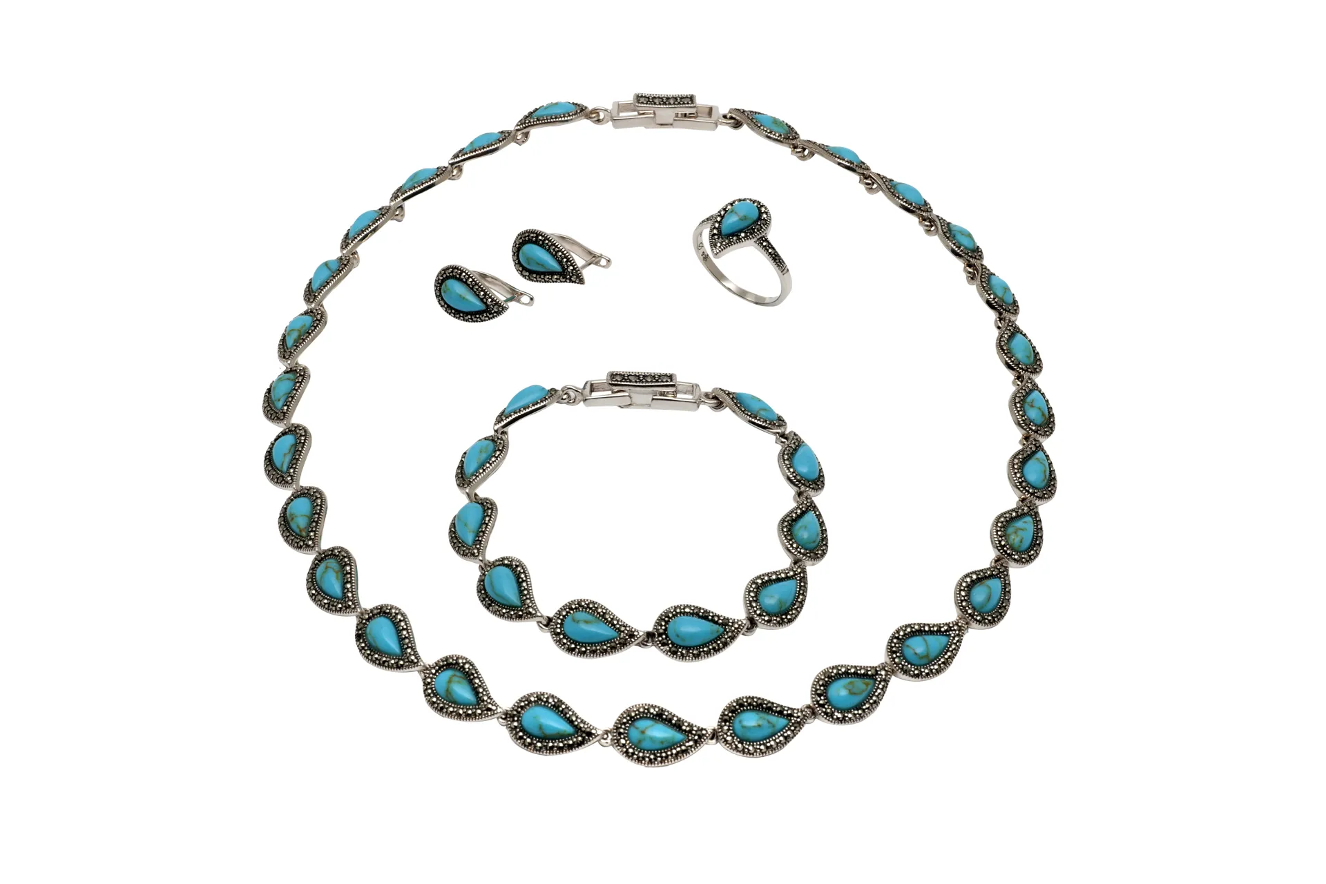silverline,ασημένια, γυναικεία, σκουλαρίκια, οδειδωμένα με τιρκουάζ, μαρκασίτη((η τιμή αφορά μόνο τα σκουλαρίκια του σετ-όχι ολόκληρο το σετ)