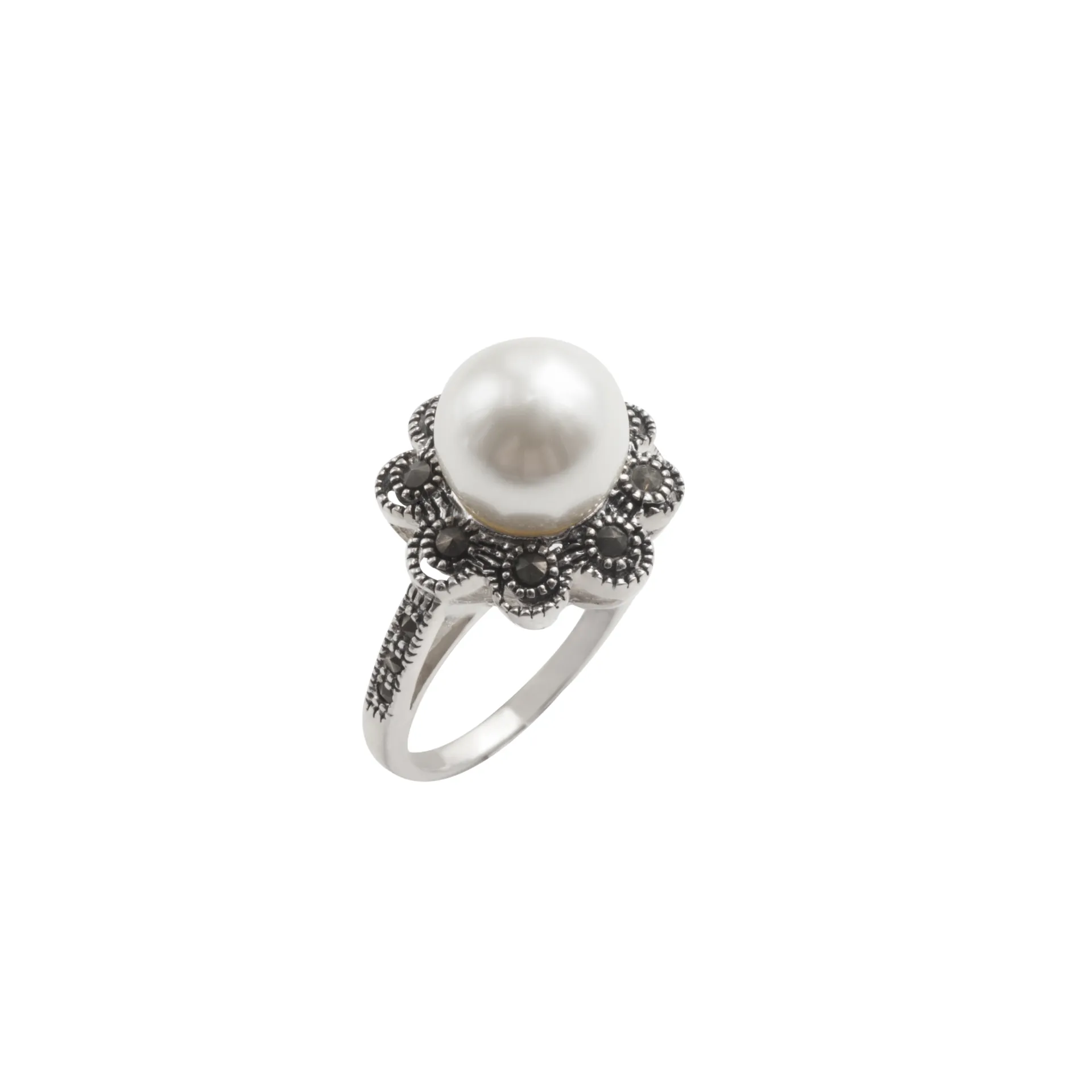 silverline, ασημένιο, γυναικείο, δαχτυλίδι, λουλούδι με πέρλα, μαρκασίτη, άσπρο, επιπλατίνωμα,