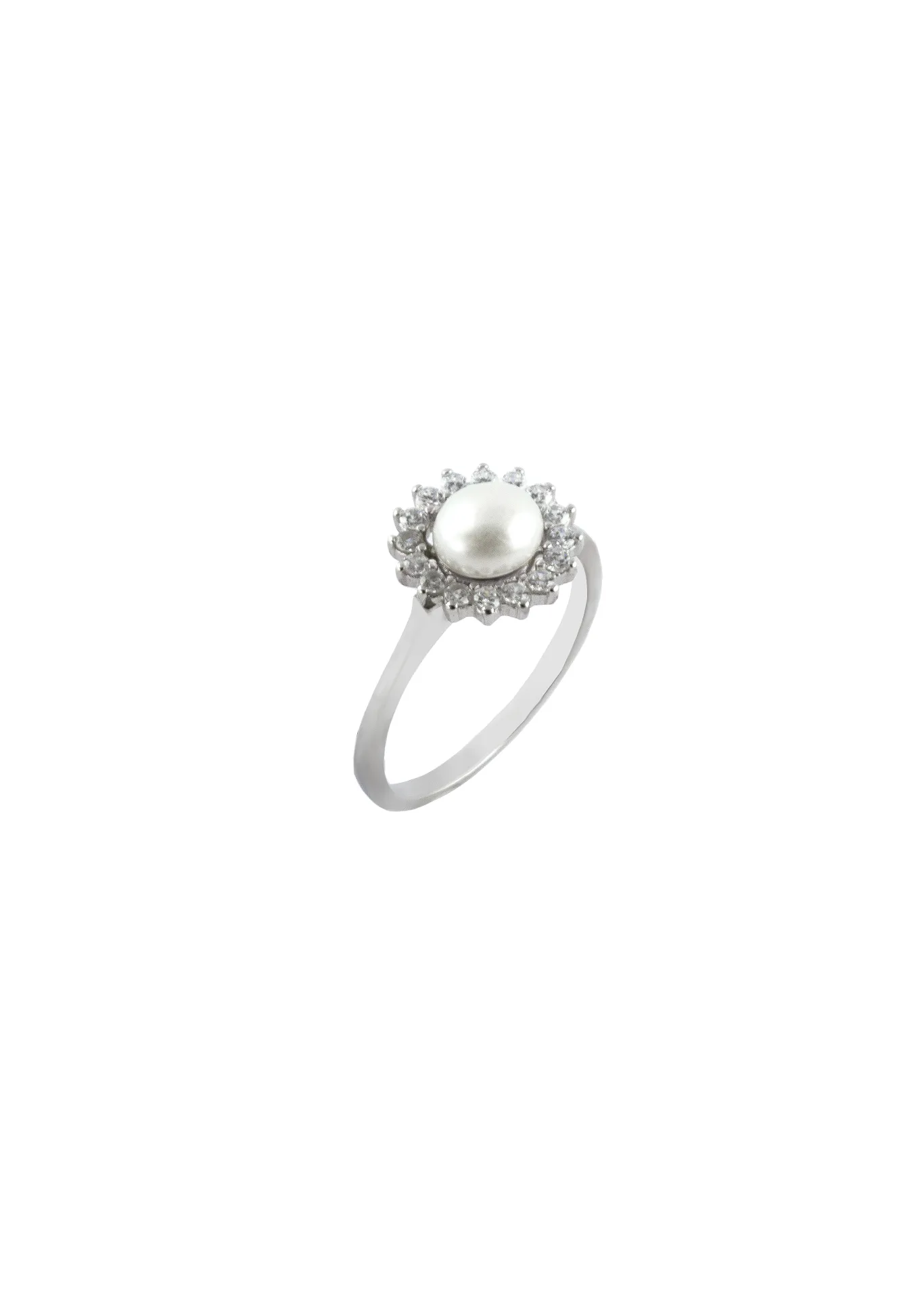 silverline, ασημένιο, γυναικείο δαχτυλίδι με λευκά ζιργκόν, άσπρο μαργαριτάρι & άσπρο επιπλατίνωμα