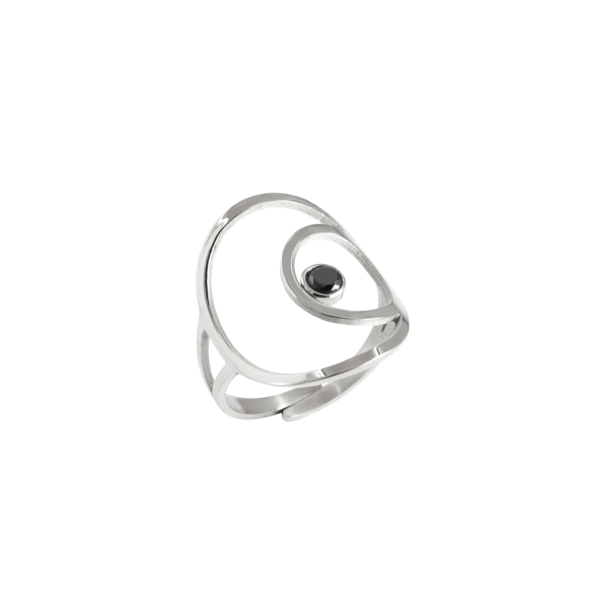 silverline,γυναικείο, δαχτυλίδι,,από ,ανοξείδωτο, ατσάλι με άσπρο, επιπλατίνωμα και μαύρο, ζιργκόν