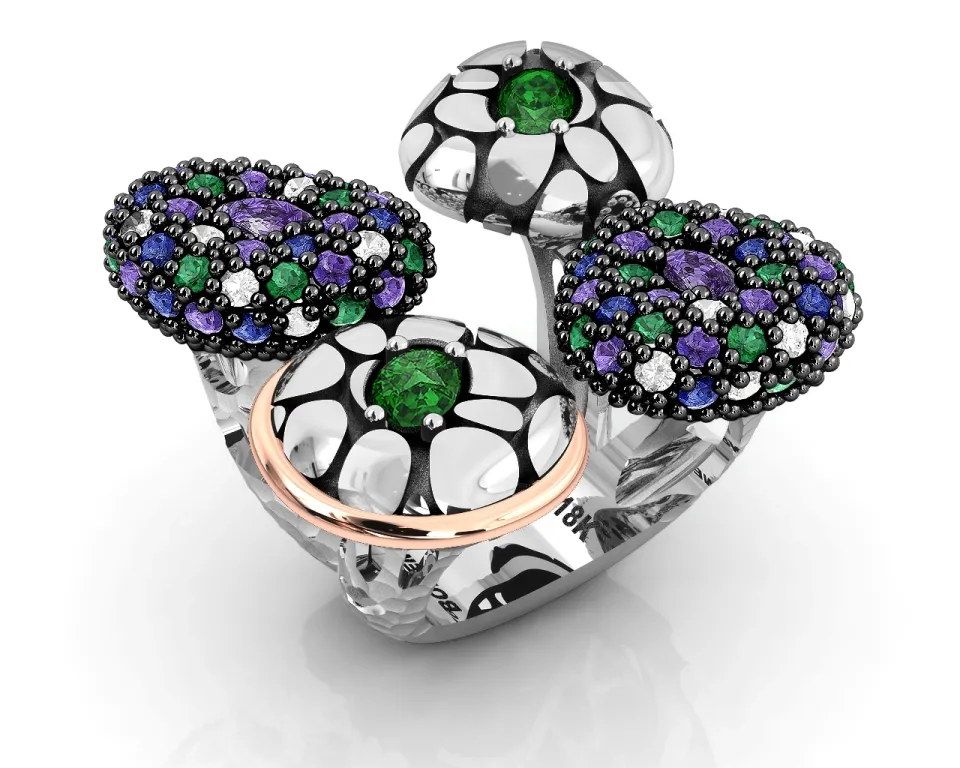 Δαχτυλίδι γυναικείο, ασημένιο, με φλούδα χρυσού Κ18, ζιργκόν, με μαύρο επιπλατίνωμα,silverline, 0430646401