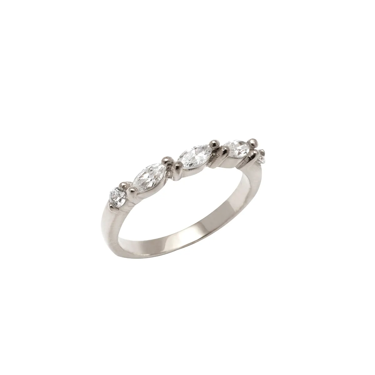 silverline, ασημένιο μισόβερο γυναικείο δαχτυλίδι με ζιργκόν