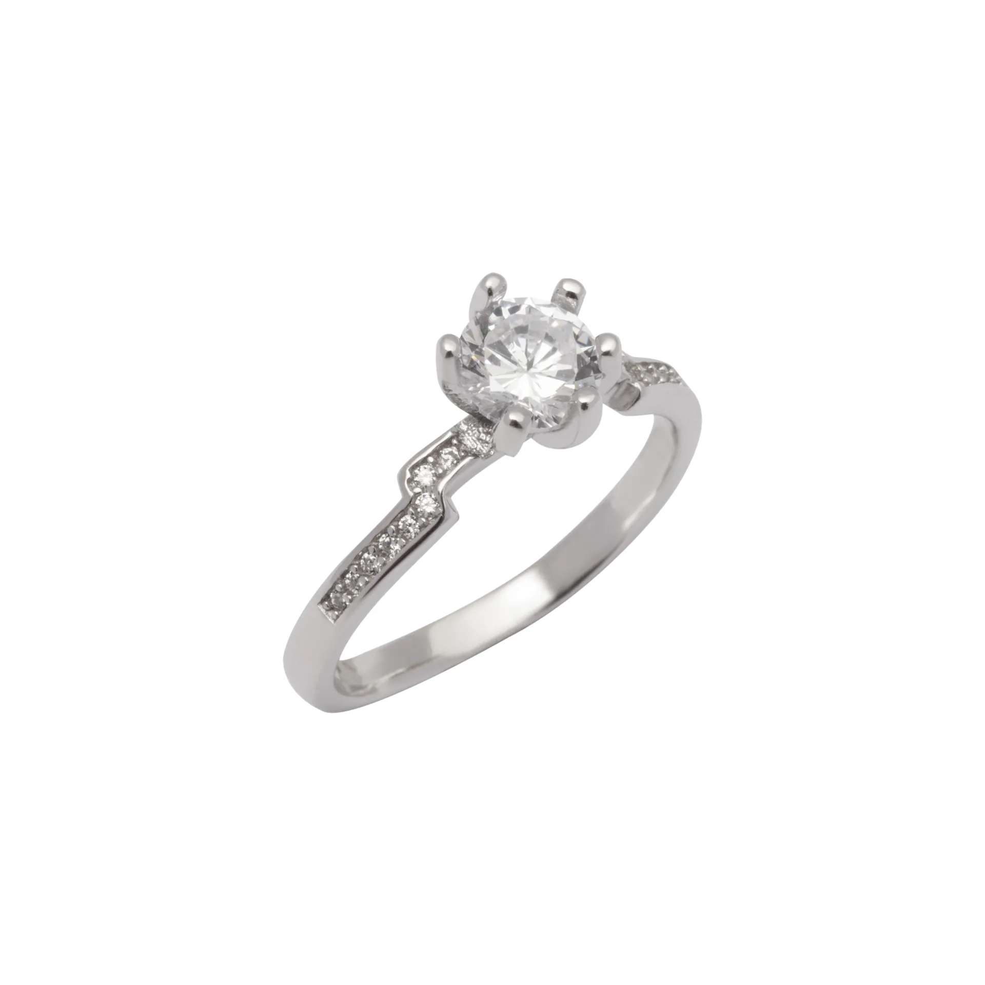 Μονόπετρο δαχτυλίδι, ασημένιο με ζιργκόν, επιπλατινωμένο, γυναικείο,silverline