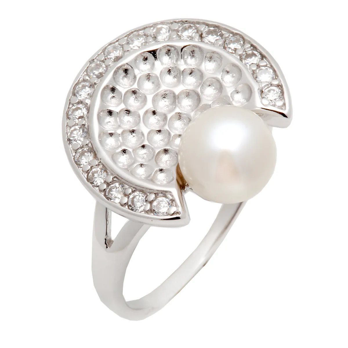 Γυναικείο Δαχτυλίδι από ασήμι 925 επιπλατινωμένο, γνήσιο μαργαριτάρι και ζιργκόν. Χωρίς νικέλιο.