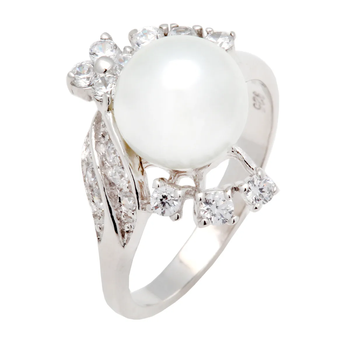 Γυναικείο Δαχτυλίδι από ασήμι 925 επιπλατινωμένο, γνήσιο μαργαριτάρι και ζιργκόν. Χωρίς νικέλιο.
