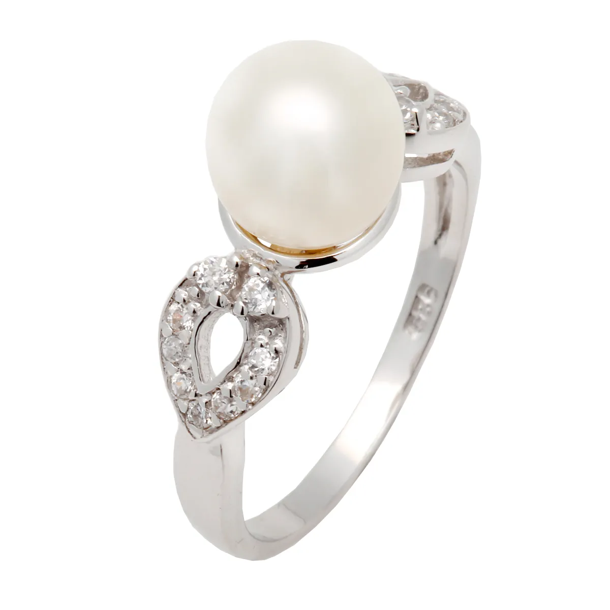 Γυναικείο Δαχτυλίδι από ασήμι 925 επιπλατινωμένο, συνθετικό μαργαριτάρι και ζιργκόν. Χωρίς νικέλιο.