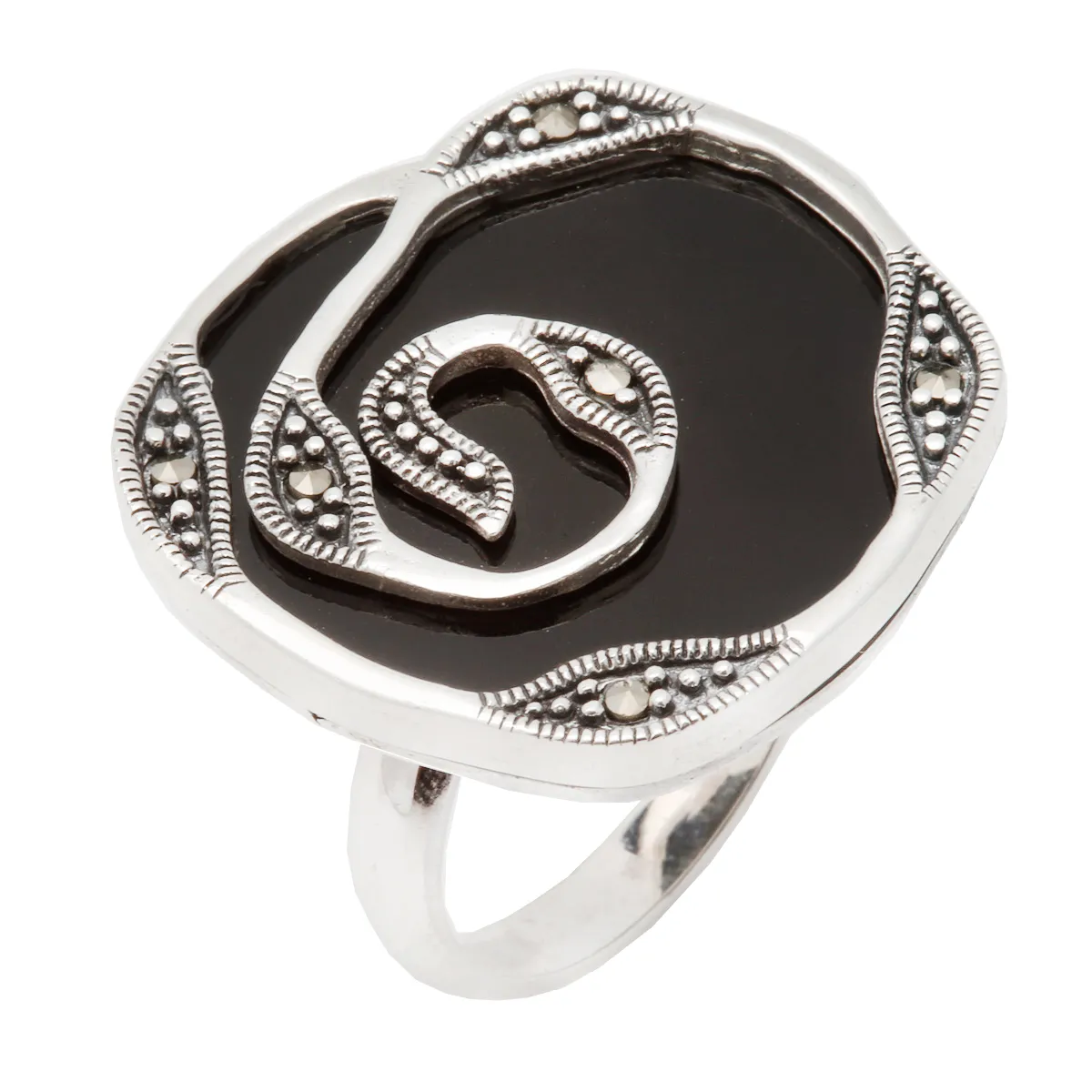 Γυναικείο Οξειδωμένο Δαχτυλίδι από ασήμι 925 με μαρκασίτη και μαύρο όνυχα.
