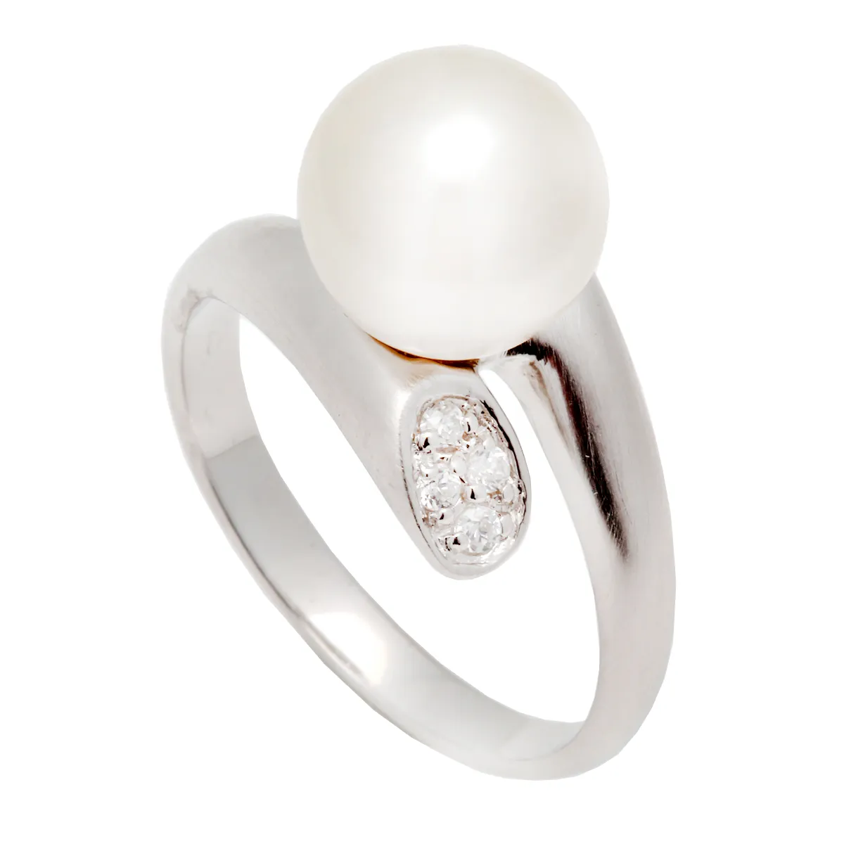 Γυναικείο Δαχτυλίδι από ασήμι 925 επιπλατινωμένο, συνθετικό μαργαριτάρι και ζιργκόν. Χωρίς νικέλιο.