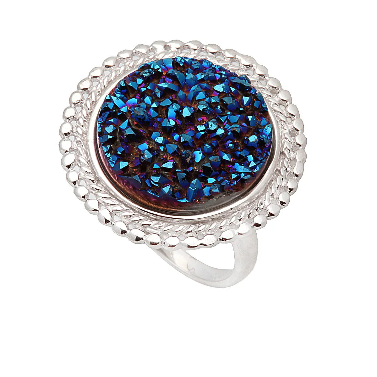 Λουστράτο δαχτυλίδι από ασήμι 925 επιπλατινωμένο με ακατέργαστο αχάτη και σφυρήλατες λεπτομέρειες. Χωρίς νικέλιο