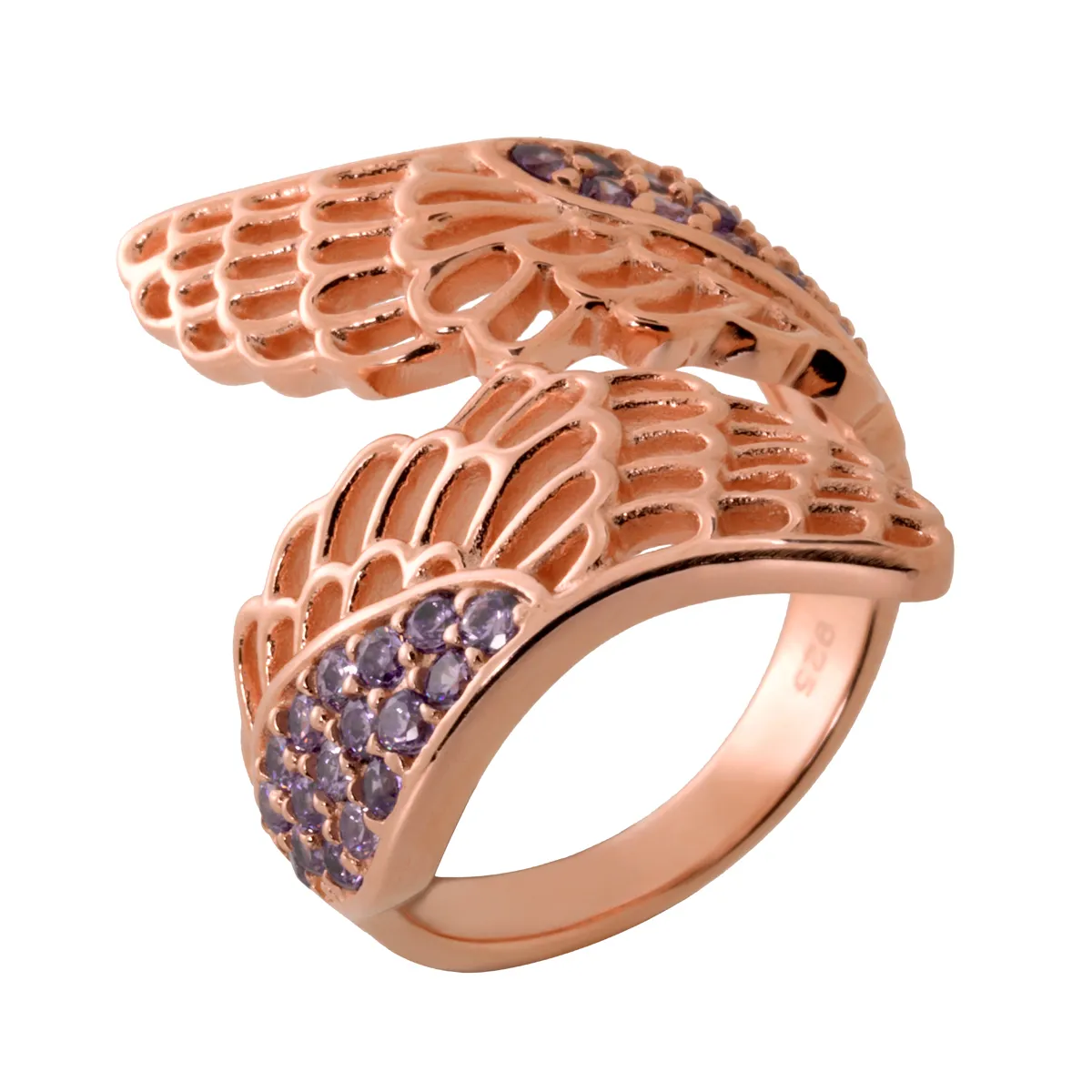 925 ΑΣΗΜΕΝΙΟ ΓΥΝΑΙΚΕΙΟ ΔΑΚΤΥΛΙΔΙ ΜΕ ΖΙΡΓΚΟΝ, ΡΟΖ ΧΡΥΣΟ & ΣΧΕΔΙΟ ΦΤΕΡΩΝ