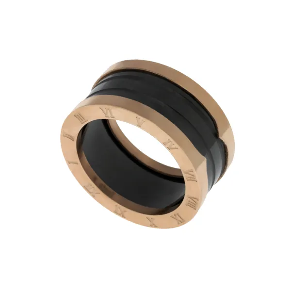 γυναικείο δαχτυλίδι από ανοιξείδωτο ατσάλι με ροζ χρυσό και μαύρο όνυχα
