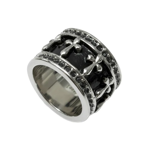 γυναικείο δαχτυλίδι από ανοξείδωτο ατσάλι με σμάλτο, μαύρα ζιργκόν και σχέδιο σταυρού