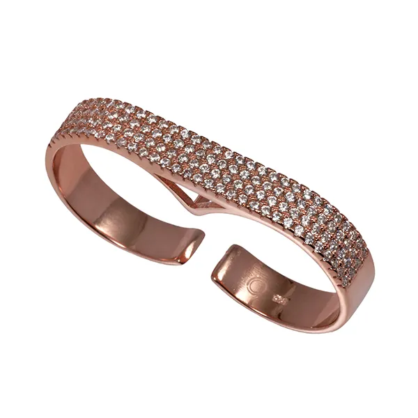 925 ασημένιο γυναικείο δαχτυλίδι, για δυο δάχτυλα, με ροζ χρυσό και ζιργκόν.