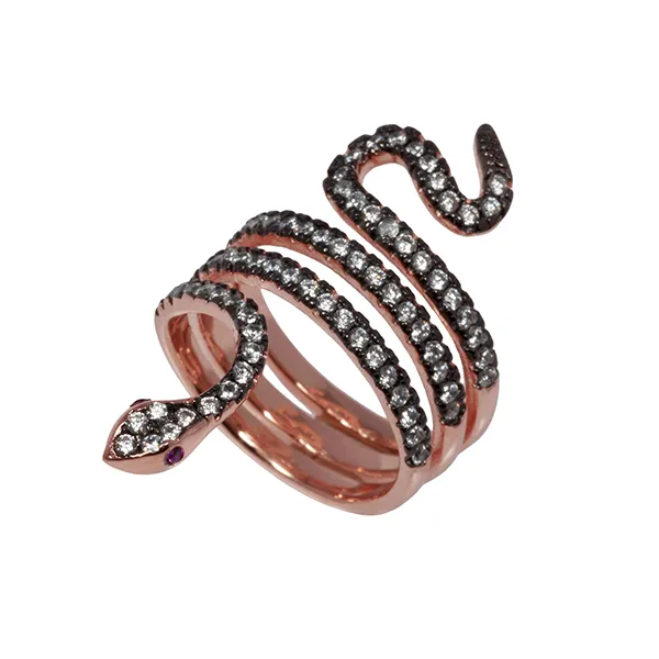 925 ασημένιο γυναικείο δαχτυλίδι φίδι, με ροζ χρυσό και μαύρο επιπλατίνωμα.