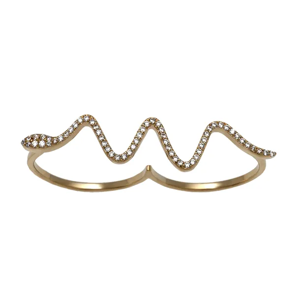 925 ασημένιο γυναικείο δαχτυλίδι,φιδι, για δυο δάχτυλα, επιχρυσωμένο, με ζιργκόν.