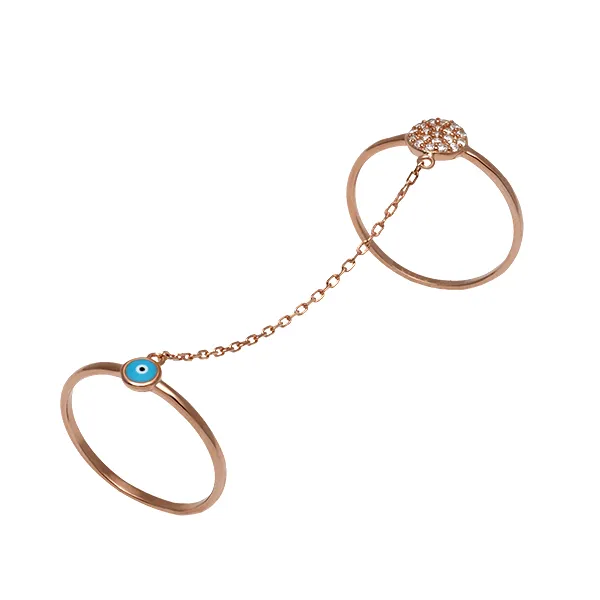 925 ασημένιο διπλο γυναικείο δαχτυλίδι,με ροζ χρυσό και ζιργκόν.