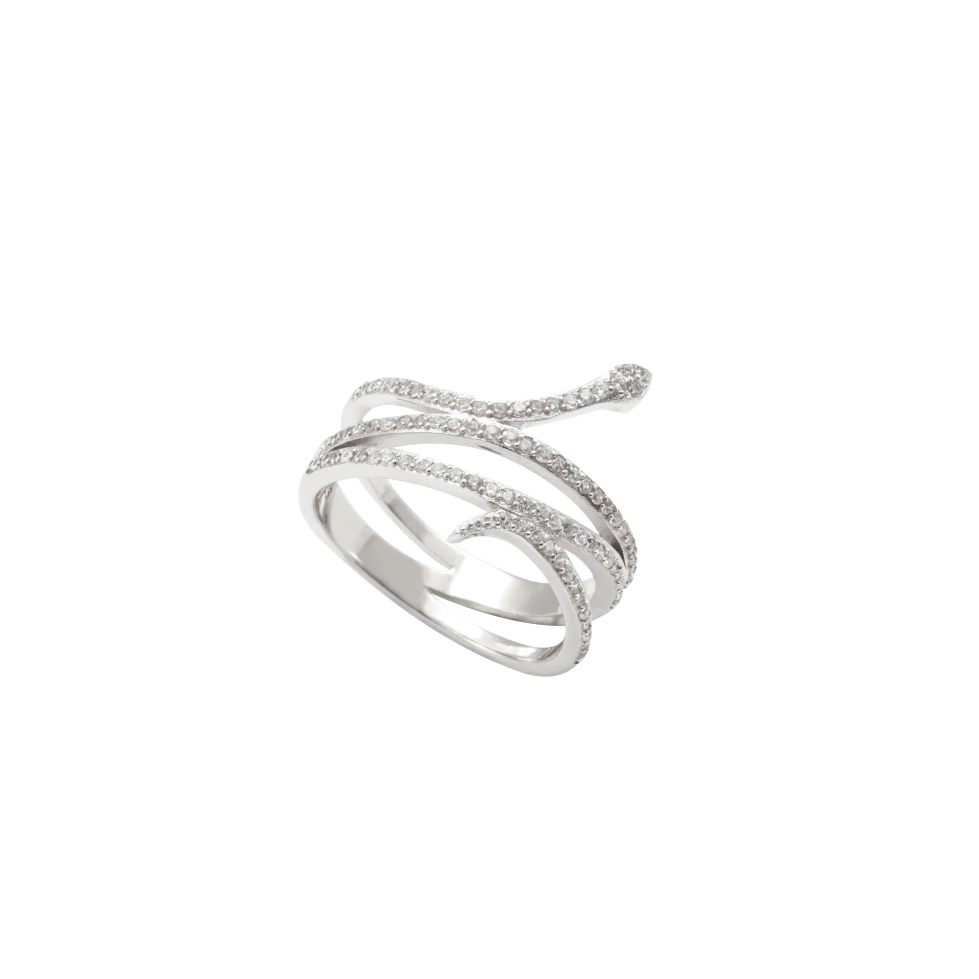 silverline, ασημένιο, γυναικείο δαχτυλίδι με φίδι, λευκά ζιργκόν, & άσπρο επιπλατίνωμα