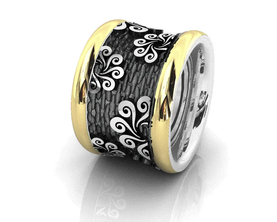 silverline,ασημένιο, γυναικείο, δαχτυλίδι με φλούδα, χρυσού, Κ18 και ασπρόμαυρο, επιπλατίνωμα,