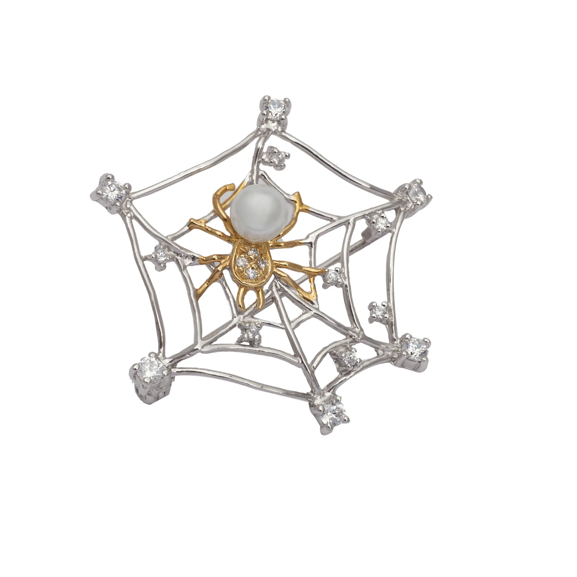 silverline, Ασημένια Γυναικεία Καρφίτσα με Πέρλα & Ζιργκόν