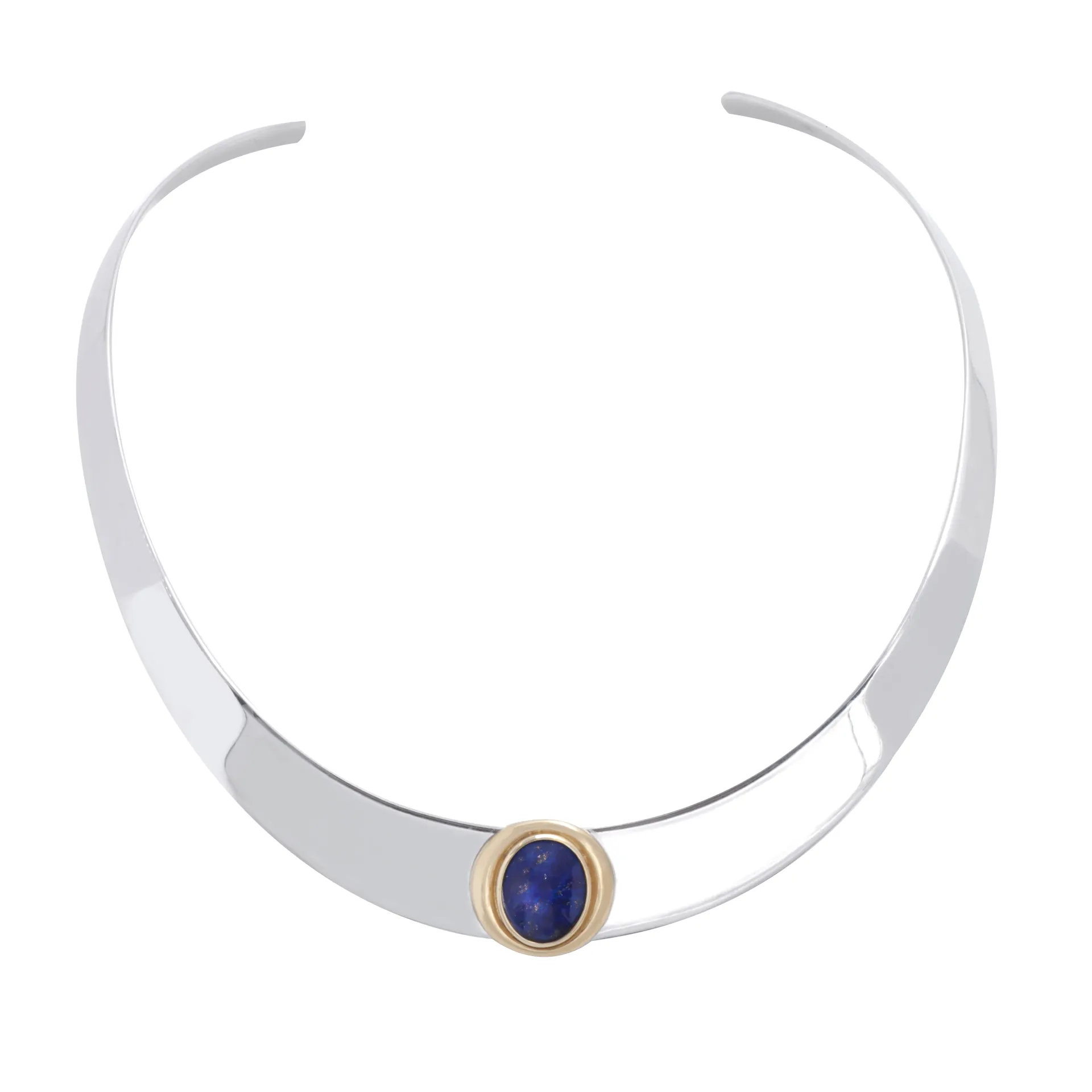 silverline, γυναικείο, ασημόχρυσο, κολιέ, λαιμαριά με 925, ασήμι, Κ14, χρυσό και λάπις, επιπλατινωμένο,