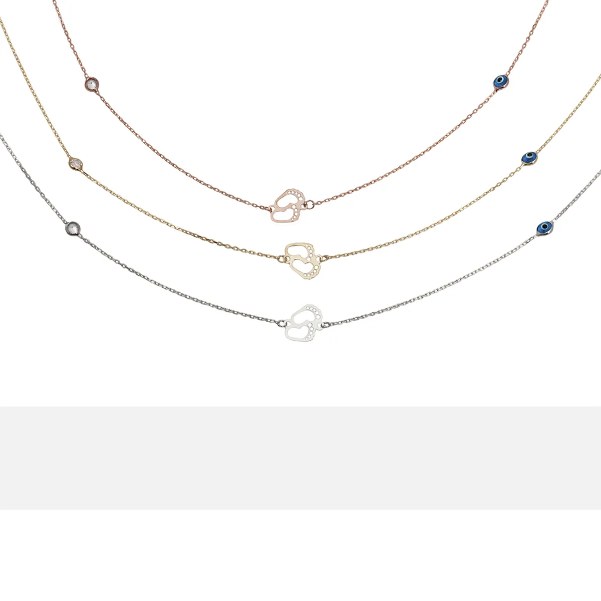 Γυναικείο ασημένιο 925 κολιέ πατουσάκια, σε ροζ χρυσό ή χρυσό ή άσπρο επιπλατίνωμα χωρίς νικέλιο, με ζιργκόν και σμάλτο στο "μάτι βασκανίας"