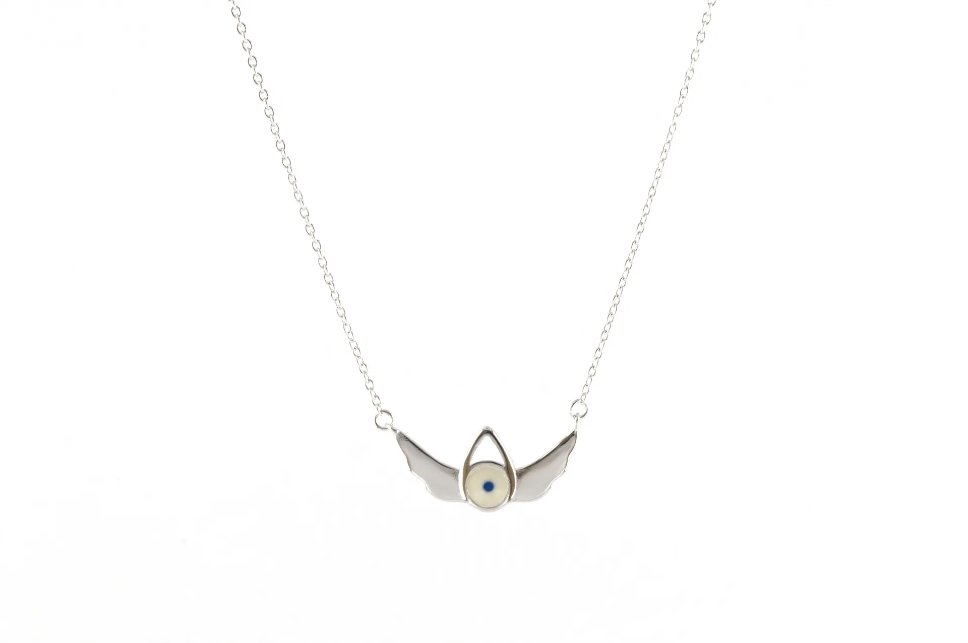 silverline, ασημένιο, γυναικείο κολιέ με μάτι βασκανίας, φτερά αγγέλου, & άσπρο επιπλατίνωμα