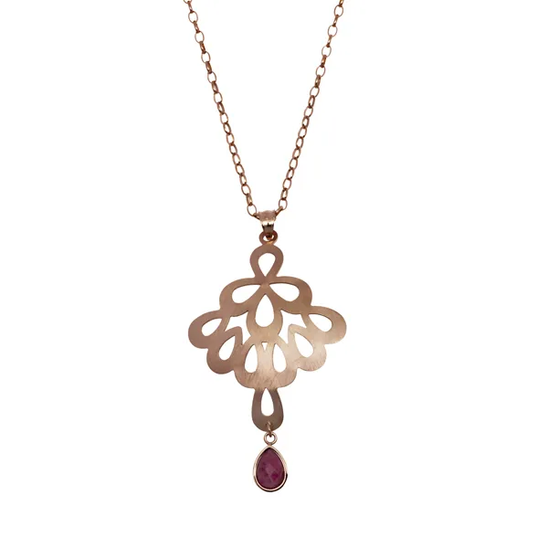 Κολιέ, γυναικείο, 80 εκατοστά μήκος, από Ανοξείδωτο Ατσάλι, με ροζ επιχρύσωμα 2micro & ροδονίτη, silverline, 0330270302