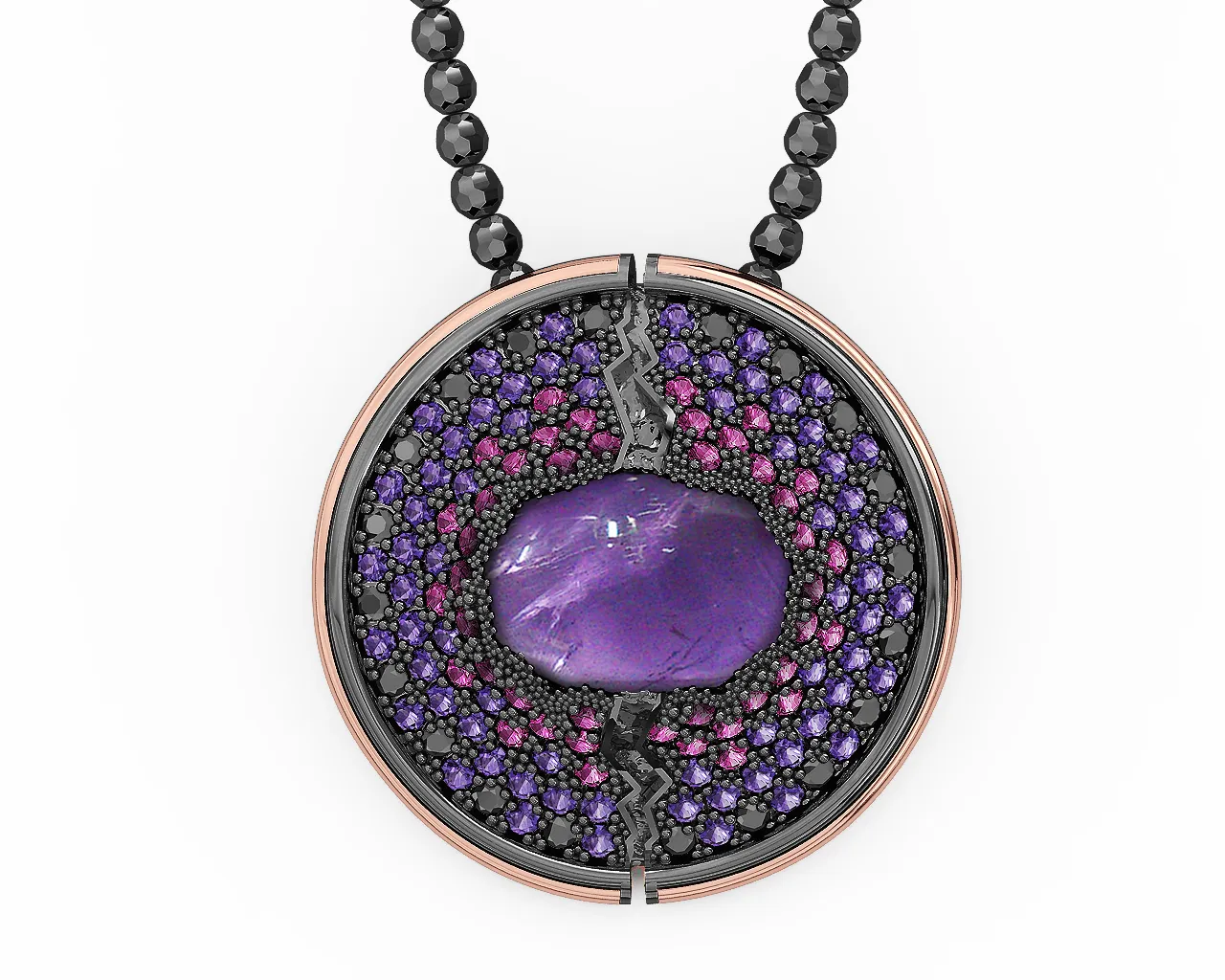 silverline,ασημένιο, γυναικείο, κολιέ με αμέθυστο, μαύρα, σπινέλια, βιολετί, ζιργκόν, φλούδα, χρυσού, Κ18 και μαύρο, επιπλατίνωμα