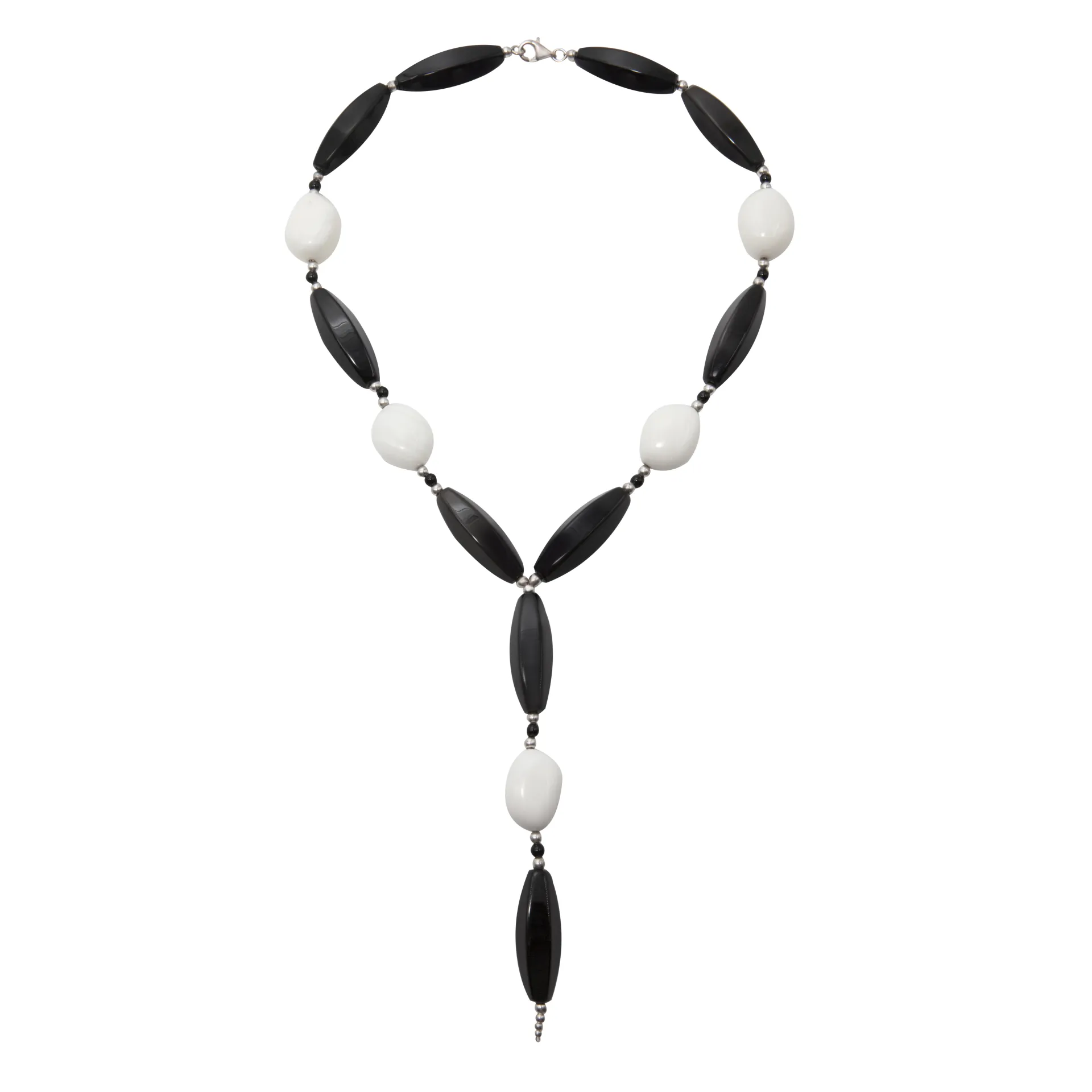 Κολιέ, γυναικείο, χειροποίητο, ασημένιο, με άσπρους & μαύρους όνυχες, 52 εκατοστά , επιπλατινωμένο,silverline, 0320049601