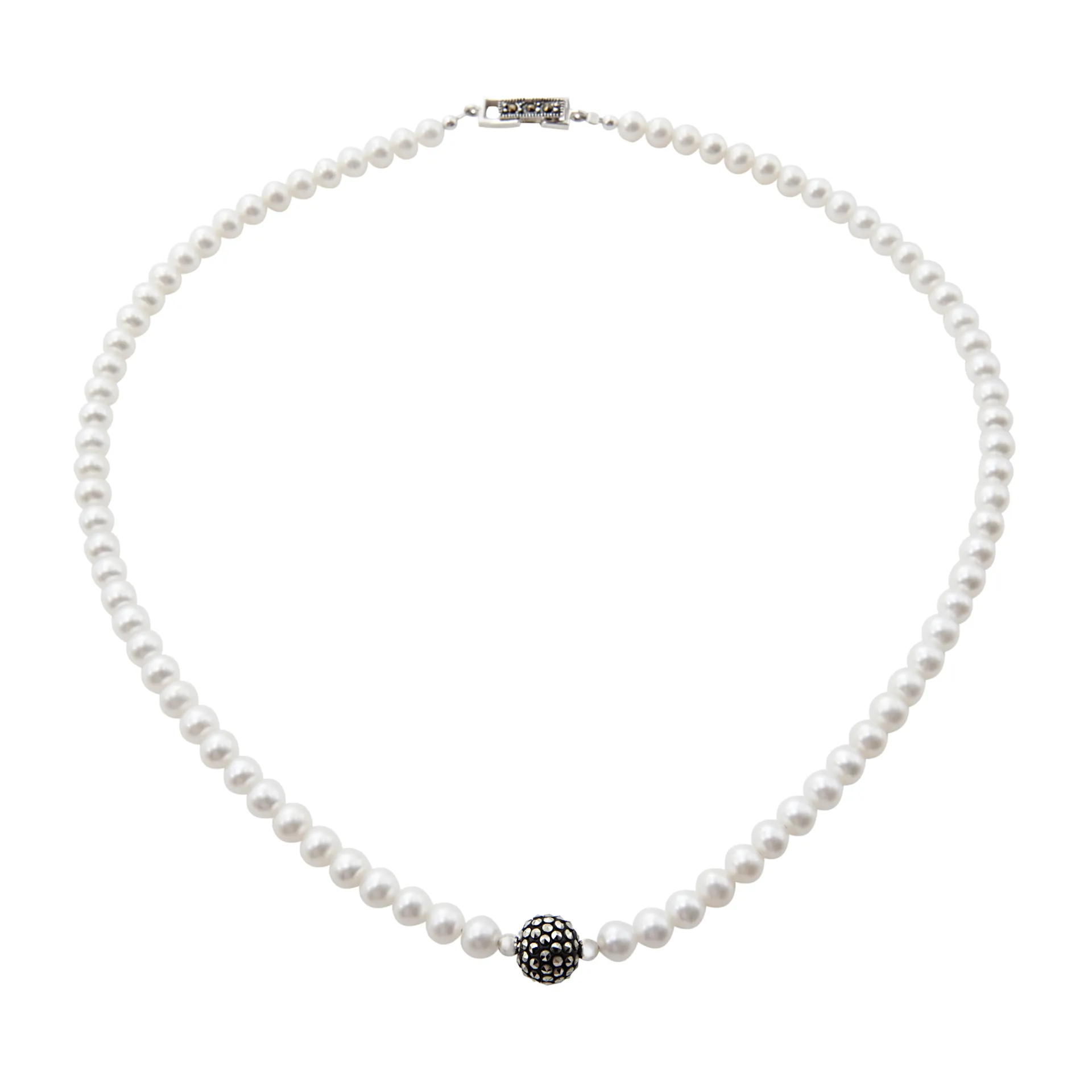silverline, ασημένιο, γυναικείο, κολιέ με πέρλες, μαρκασίτη, άσπρο, επιπλατίνωμα,