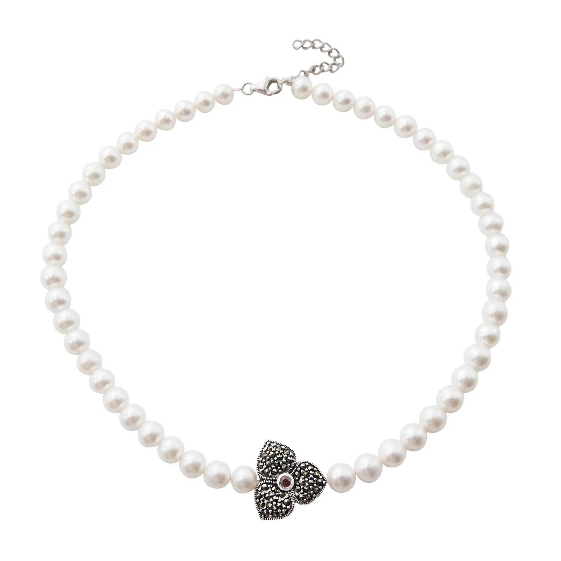 silverline, ασημένιο, γυναικείο, κολιέ, λουλούδι με πέρλες, μαρκασίτη, ζιργκόν, άσπρο, επιπλατίνωμα,