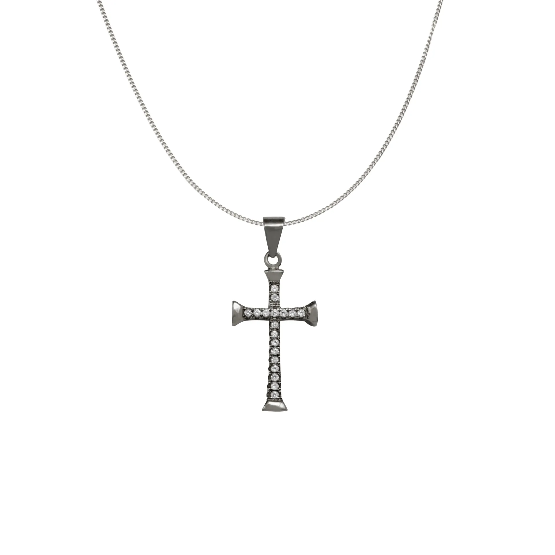 silverline, ασημένιο, γυναικείο, κολιέ με σταυρό, ζιργκόν, μα΄υρο, επιπλατίνωμα,