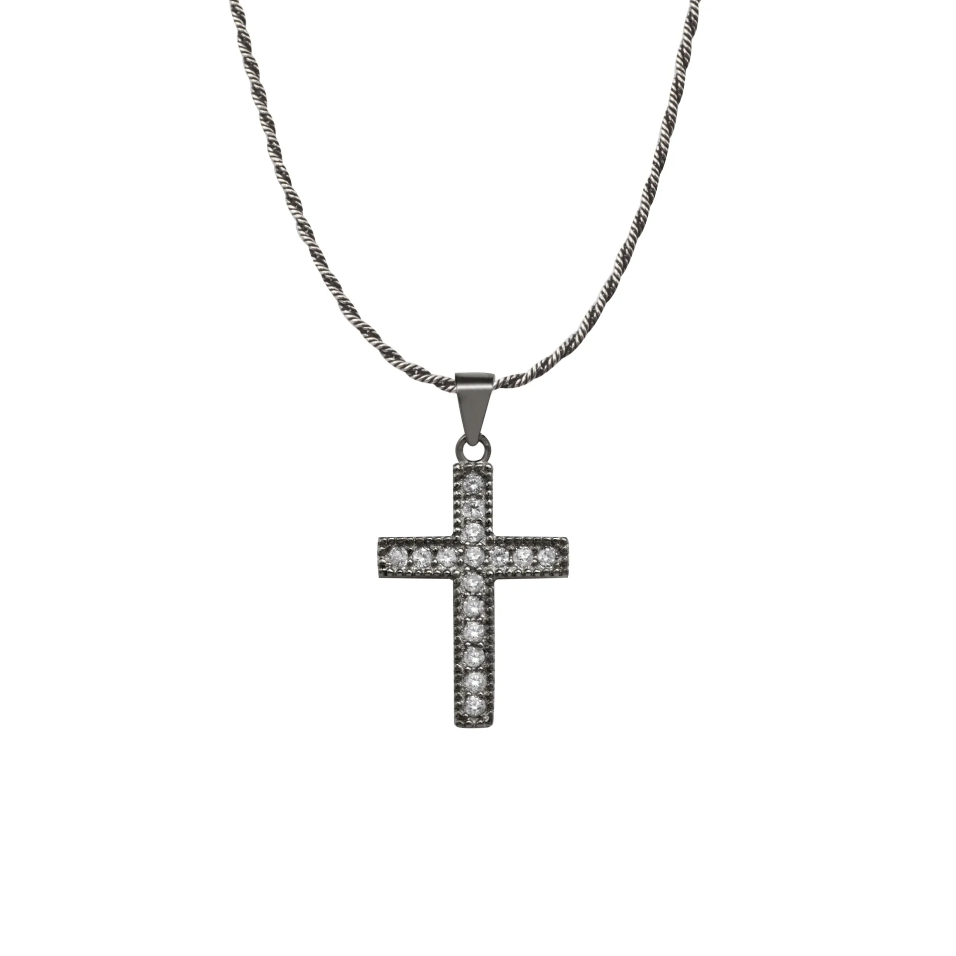 silverline, ασημένιο, γυναικείο, κολιέ με σταυρό, ζιργκόν, μαύρο, επιπλατίνωμα,