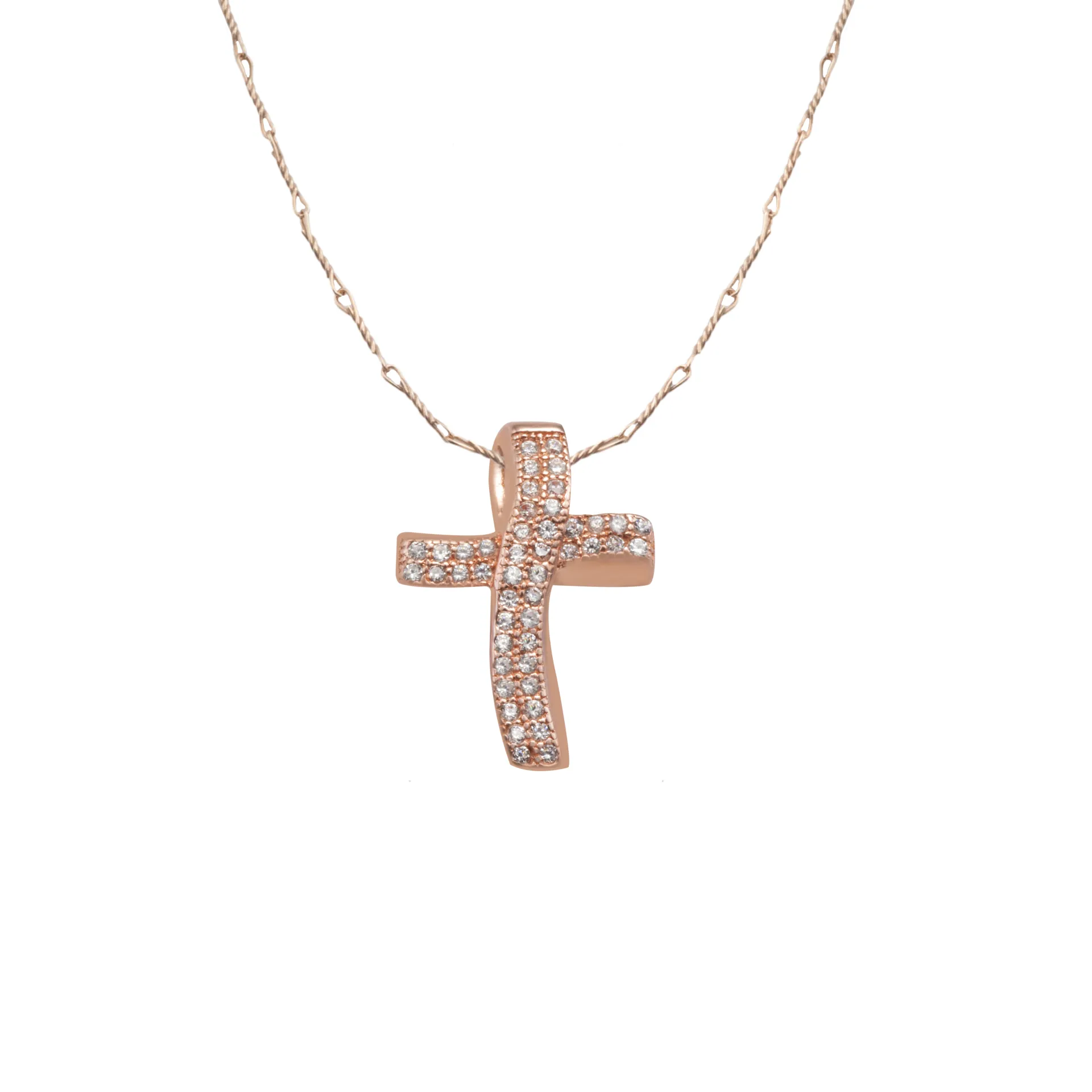 silverline, ασημένιο, γυναικείο, κολιέ με σταυρό, ζιργκόν, ροζ, επιχρύσωμα,