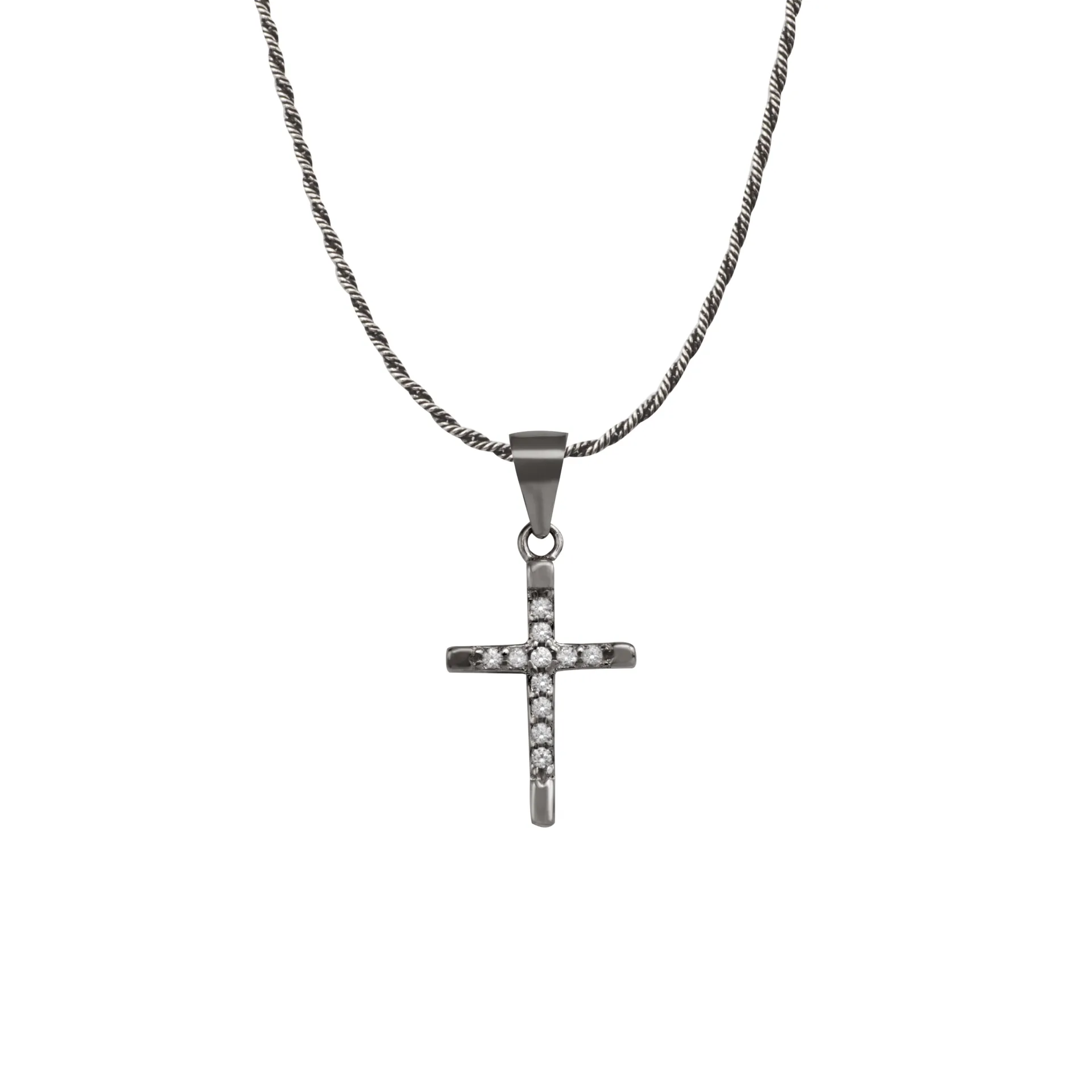 silverline, ασημένιο, γυναικείο, κολιέ με σταυρό, ζιργκόν, μαύρο, επιπλατίνωμα,