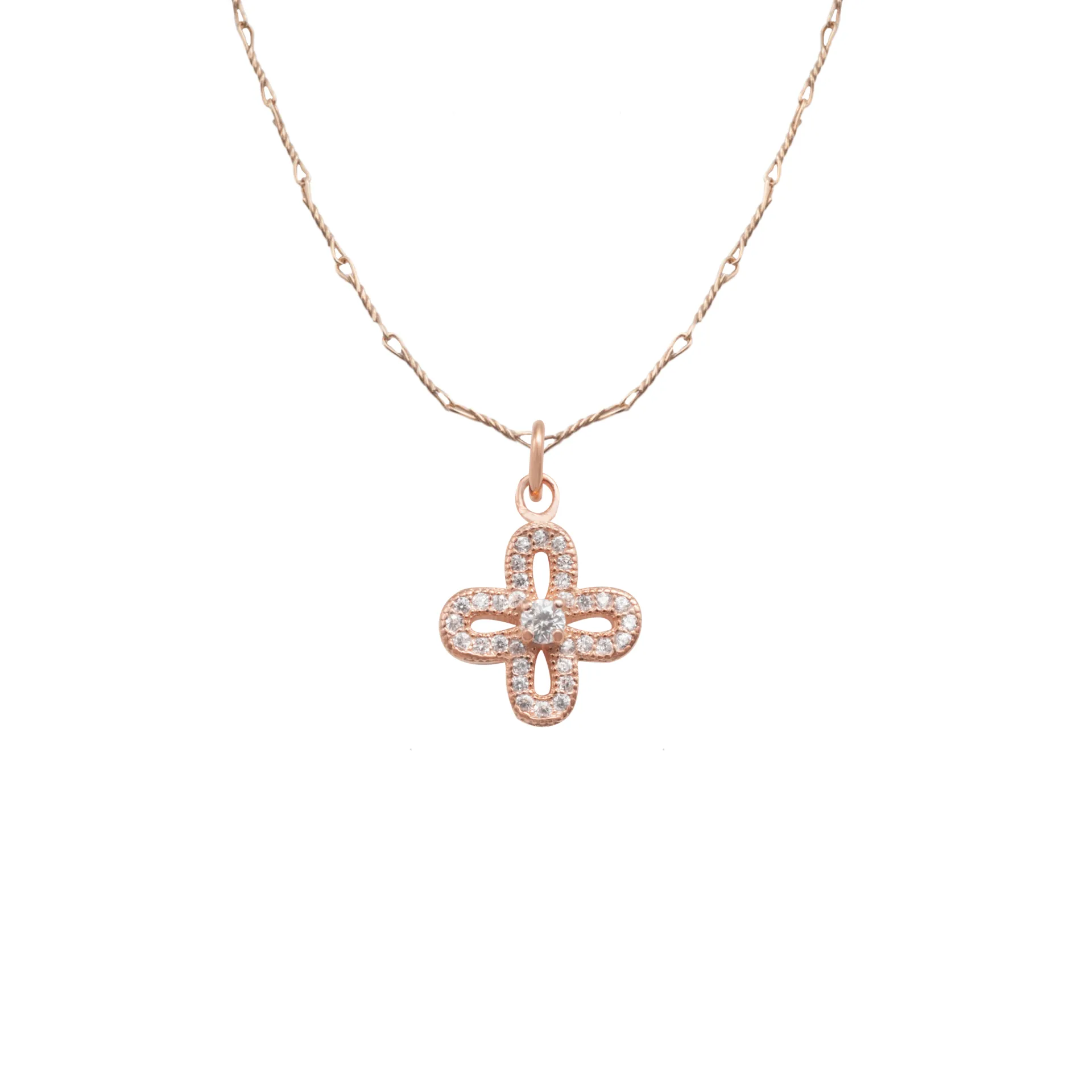 silverline, ασημένιο, γυναικείο, κολιέ με σταυρό, ζιργκόν, ροζ, επιχρύσωμα,