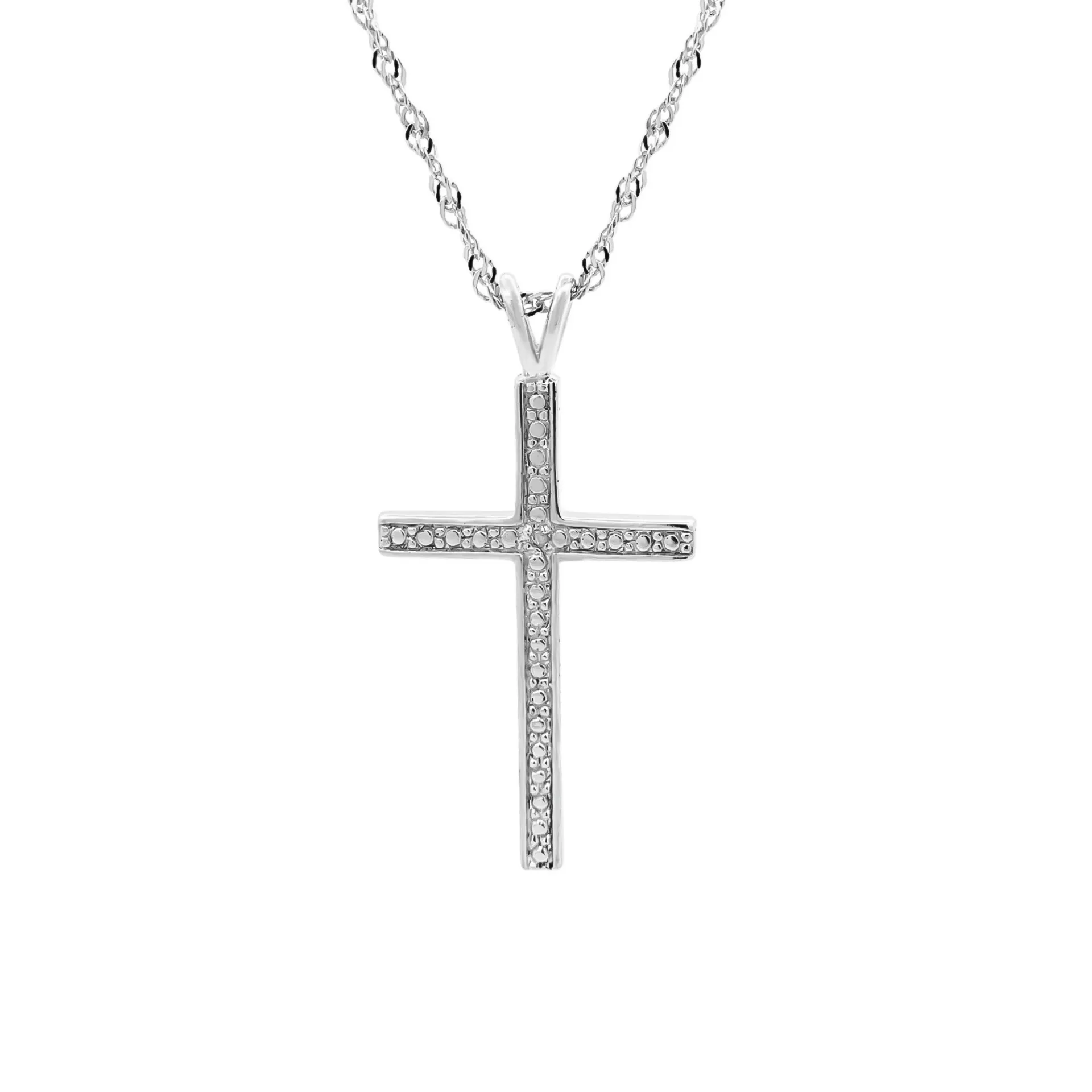 Κολιέ, με σταυρό, ασημένιο, γυναικείο, με διαμάντι χαμηλής καθαρότητας & άσπρο επιπλατίνωμα, 3,5Χ1,8 εκατοστά ο σταυρός, σε 3 διαφορετικά μήκη η καδένα 40, 45 & 50 εκατοστά, silverline, 0530105901NE