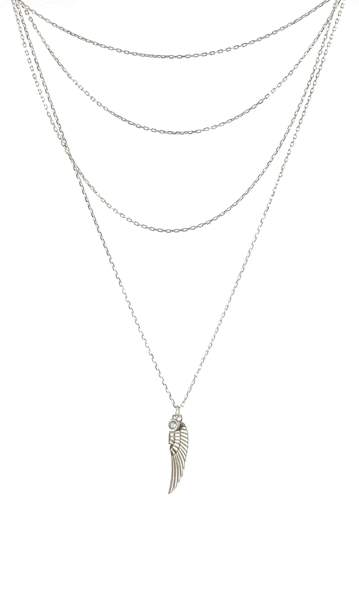 silverline, ασημένιο, γυναικείο κολιέ 82 εκατοστών με λευκό ζιργκόν, φτερό & άσπρο επιπλατίνωμα