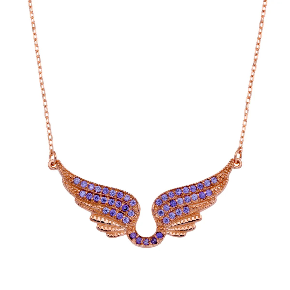 925 ΑΣΗΜΕΝΙΟ ΓΥΝΑΙΚΕΙΟ ΚΟΛΙΕ ΜΕ ΣΧΕΔΙΟ ΦΤΕΡΩΝ, ΡΟΖ ΧΡΥΣΟ & ΖΙΡΓΚΟΝ ΣΕ ΧΡΩΜΑ ΑΜΕΘΥΣΤΟΥ