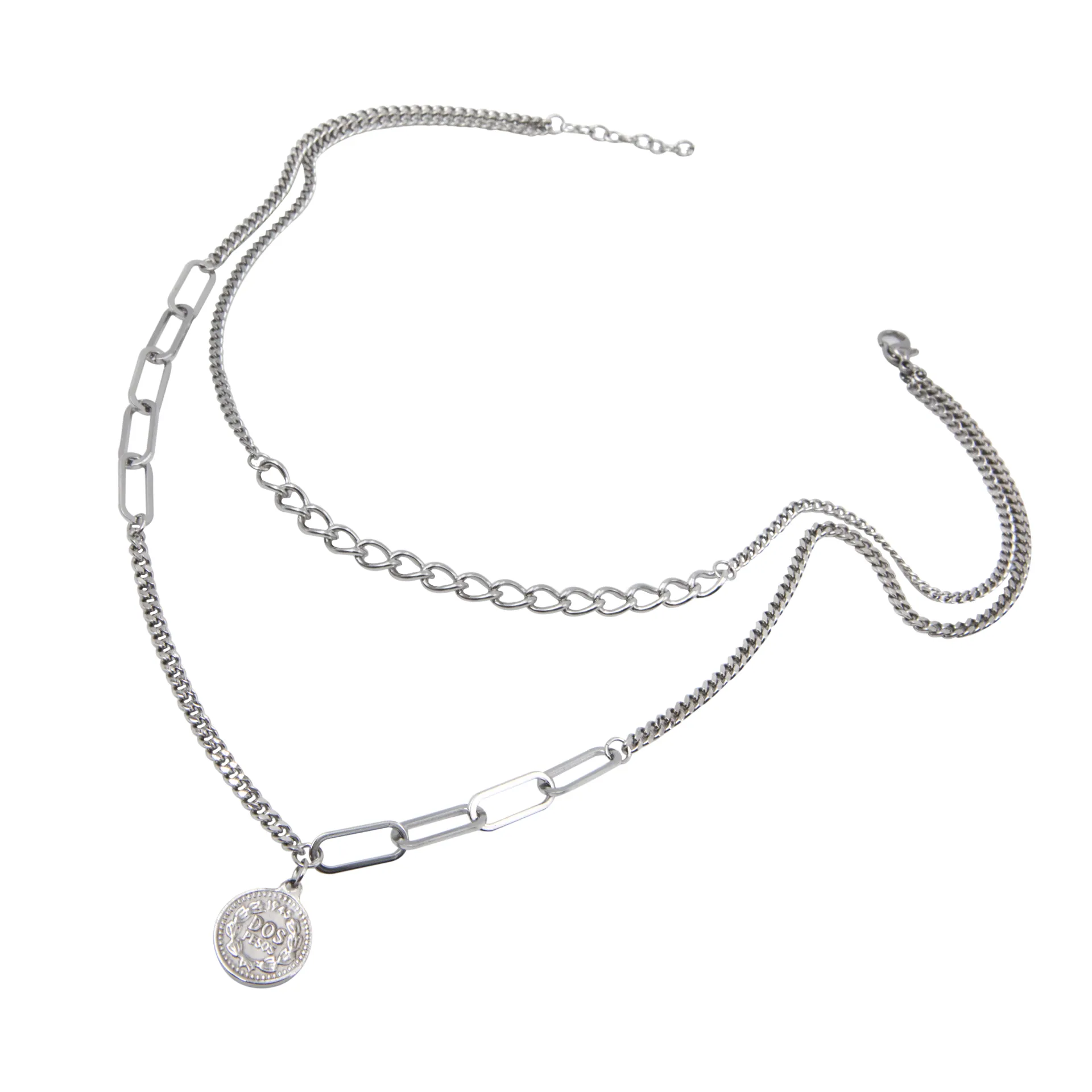 silverline, γυναικείο ,κολιέ με νόμισμα και άσπρο, επιπλατίνωμα, από ,ανοξείδωτο, ατσάλι, 46,5cm