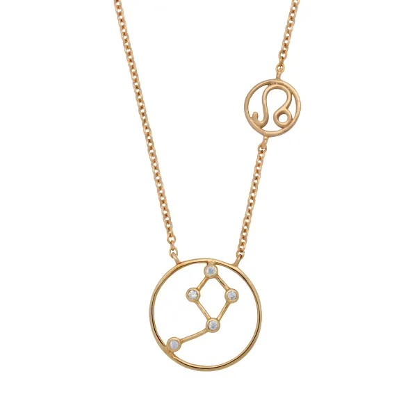 925 ασημένιο γυναικείο κολιέ επιχρυσωμένο με το σύμβολο του ΛΕΟΝΤΟΣ του ζωδιακού κύκλου και ζιργκόν