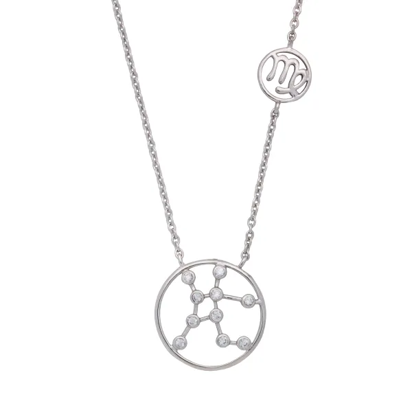 925 ασημένιο επιπλατινωμένο γυναικείο κολιέ με το σύμβολο της ΠΑΡΘΕΝΟΥ του ζωδιακού κύκλου και ζιργκόν