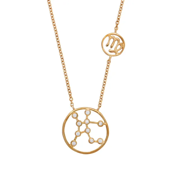 925 ασημένιο γυναικείο κολιέ επιχρυσωμένο με το σύμβολο της ΠΑΡΘΕΝΟΥ του ζωδιακού κύκλου και ζιργκόν