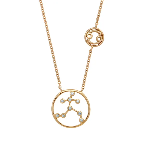 925 ασημένιο γυναικείο κολιέ επιχρυσωμένο με το σύμβολο του ΚΑΡΚΙΝΟΥ του ζωδιακού κυκλου και ζιργκόν